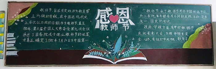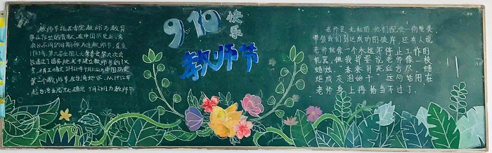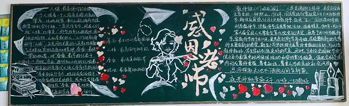 本次主题黑板报中内容丰富、设计新颖,吸引了同学们关注的目光,成了教师节一道美丽的校园文化风景,传递着同学们真心的祝福,让每一位老师都感受到节日的快乐。