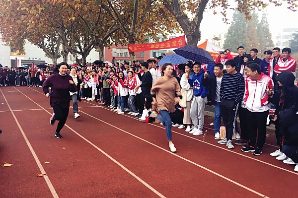 11月17日上午,校第二十二届运动会的最后一个项目,由工会组织的教职工30米接力赛在同学们的呐喊助威声中热烈登场。教职工分为10个比赛组,来回接力竞跑,用时最短的组获胜。