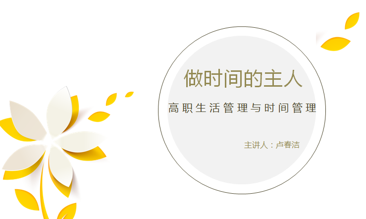 卢老师以提问的方式切入讲座主题,让同学们思考了以下三个问题:你适应高职生活吗?你对自己的高职生活安排是否满意?你是否善于管理时间?同学们纷纷踊跃发言表达自己对高职生活的向往和计划,卢老师就以上三个问题给大家讲述了高职生的适应问题,生活管理以及时间管理这三个方面的内容,着重介绍了时间管理的意义及益处,改善时间管理的方法。同时带领全体同学朗诵了诗歌《抓住今天》,让同学们从文学作品中体会到今天的可贵,珍惜今天的美好时光发奋学习。在诗歌朗诵之后穿插了课堂活动——“记录时间流水账”,同学们在纸上列出每日花费在睡眠、吃饭、上课、娱乐等方面的时间,并且加以反思和规划,如何能够更好的安排自己的学习和生活的时间,最大程度的提高学习效率。