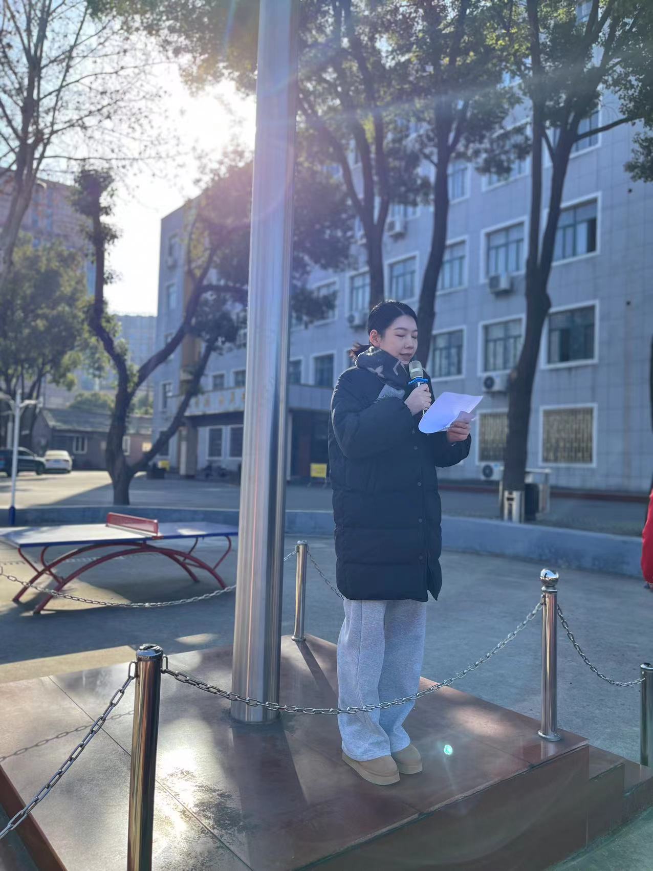 1月15日上午,我校举行2023年秋季学期第二十周升国旗仪式,教务处王倩莹老师作国旗下讲话,对全校学生进行期末考试动员。
