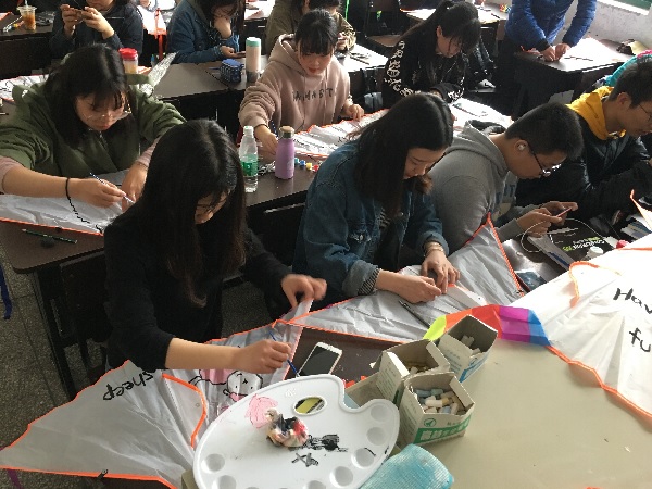 初春三月,东风吹拂,正是放风筝的最好季节。中国古代,人们借放风筝来避邪,如今大家更是通过放风筝来锻炼身体,表达对美好春天的祈盼。同学们希望能将传统和公益结合起来,讨论后决定手绘一些风筝派发给游客,既传递春天的祝福,又弘扬传统文化。于是同学们用零花钱提前购买了DIY的空白风筝,课余时间开展创作,每位同学绘制一张风筝,将自己美好的祝福描画在风筝的翅膀之上。