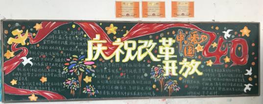 1978年,以党的十一届三中全会为标志,中国开启了改革开放历史征程。从农村到城市,从试点到推广,从经济体制改革到全面深化改革,40年众志成城,40年砥砺奋进,中华民族实现从“站起来”到“富起来”再到“强起来”的历史性飞跃。2018年是改革开放40周年,为让同学们体会改革开放带来的巨大变化,我校开展了以“庆祝改革开放40周年”为主题的黑板报评比活动。