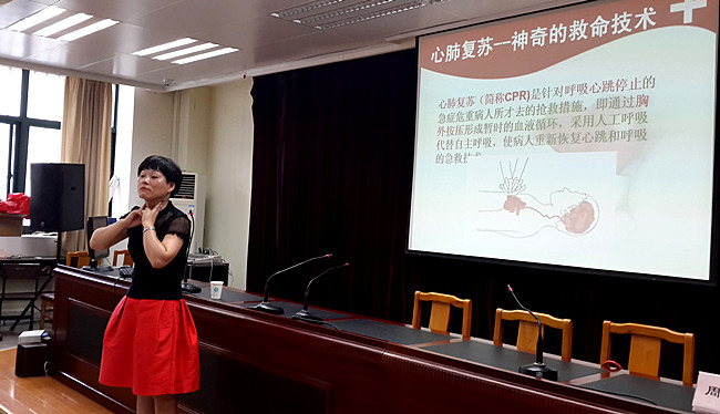 九月十四日下午二点,我校邀请了“雨花红十字会”的张霞老师,在报告厅给高职新生开展急救、自救、互救知识的健康讲座。该讲座受到了学生的热烈欢迎和一致好评。